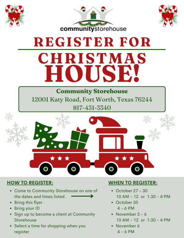This shift is to qualify and register guests for our Christmas House Event in December. This will happen much like we do for the Food Pantry, but we will actually be scheduling them for an appointment on this day. Further instructions will be given on the day you come in.